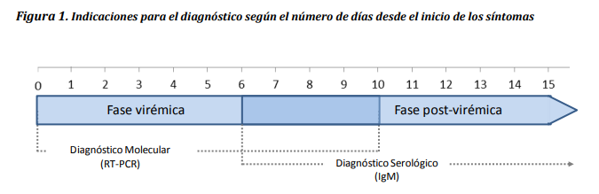 Figura 2. Indicaciones para el diagnóstico según el número de días desde el inicio de los síntomas